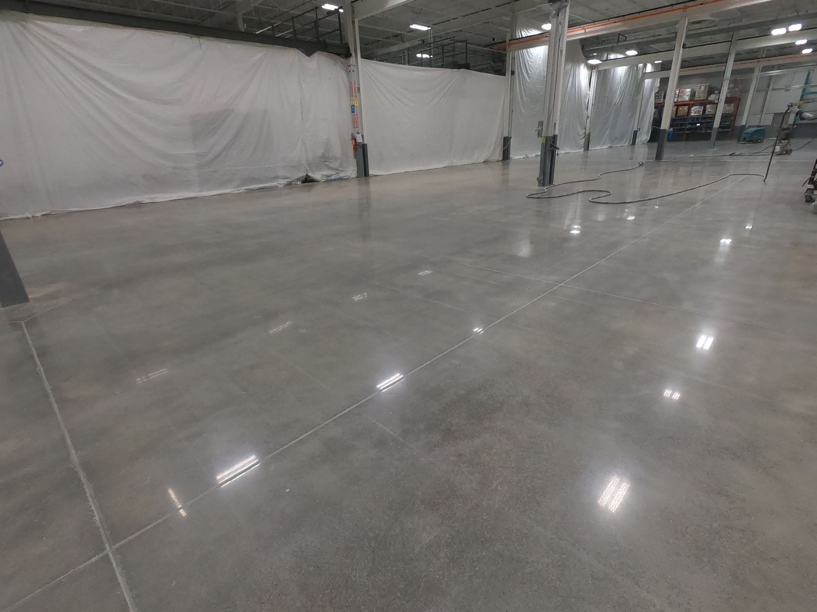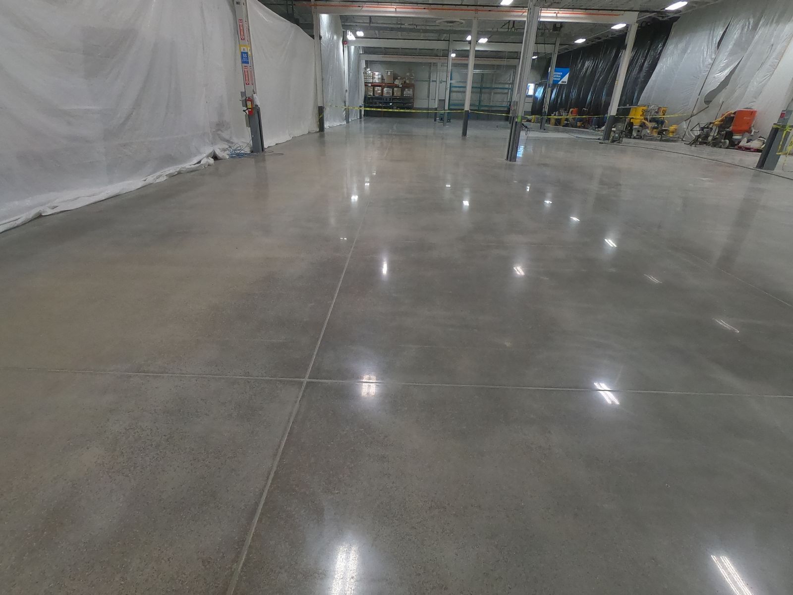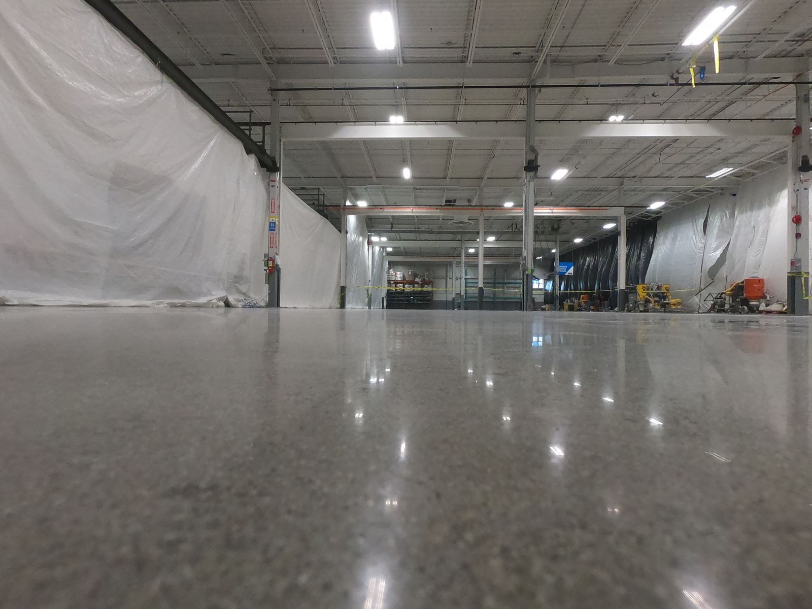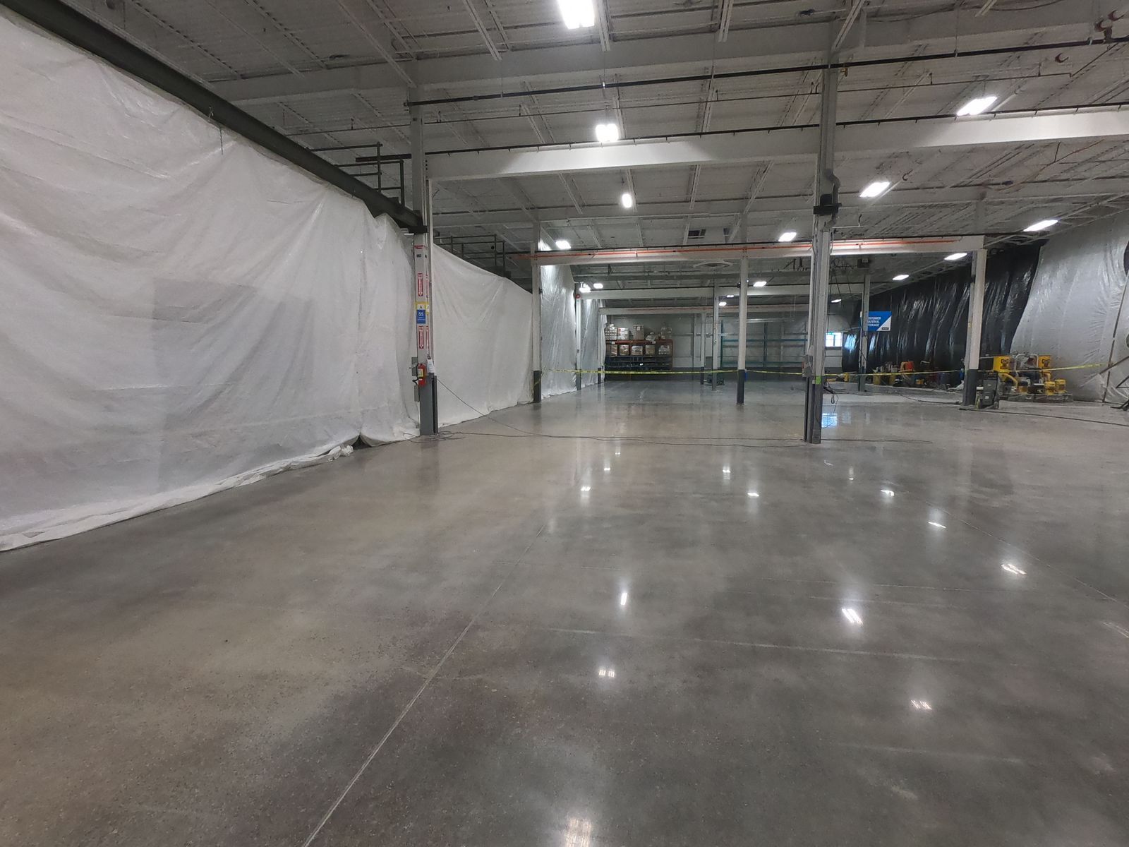 IFS has completed over 195,000 sqft of polished concrete to date at ATS Automation in Cambridge Ontario. A level 3 finish with a salt and pepper exposure was provided in several areas, ranging from renovated spaces to newly expanded areas with freshly poured concrete floors. This was accomplished by utilizing a combination of our proprietary three headed ride-on grinder in combination with more traditional single planetary grinders.